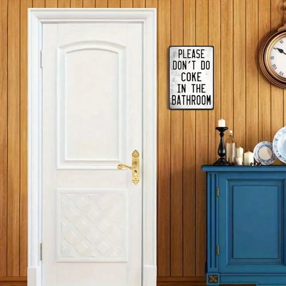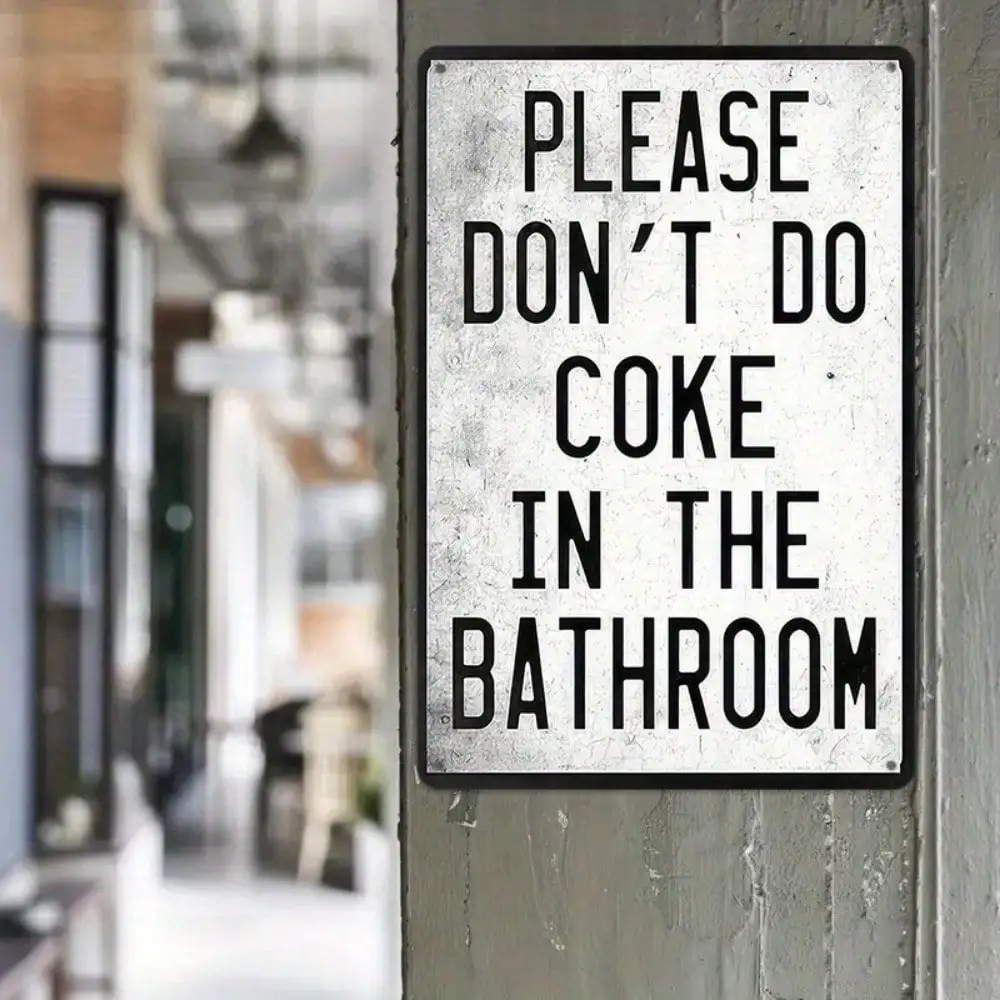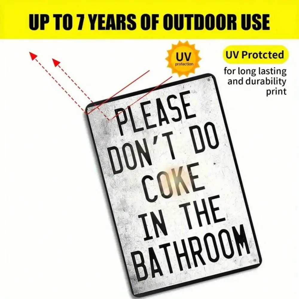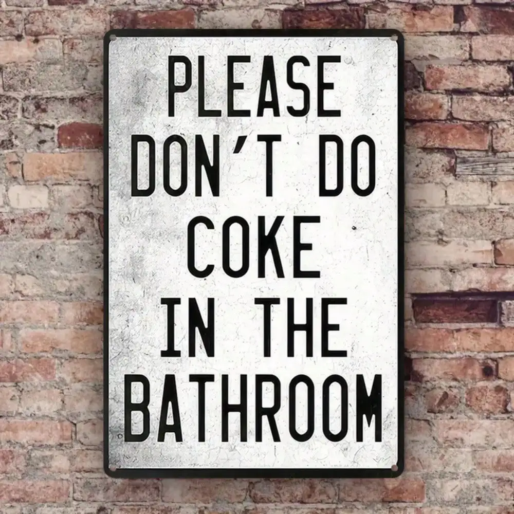 1PC Funny Metal Sign "Please Don’t Do Coke in Bathroom" - Humorous Home Decor, High-Quality Tin Wall Art, Fun Gift Idea