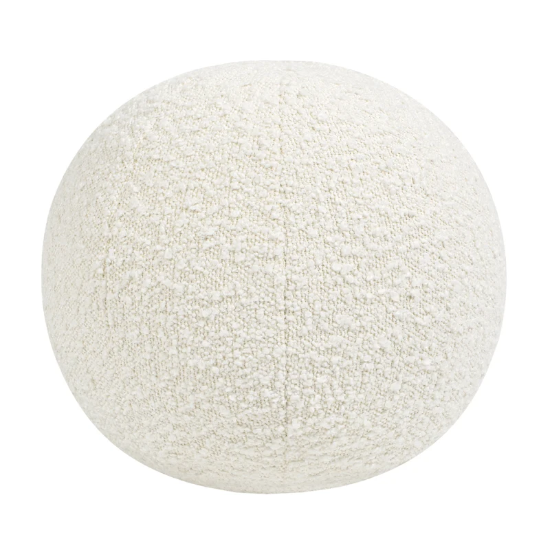 Luna 12 Round Sphere Accent Ball Throw Pillow, Ivory White Boucle