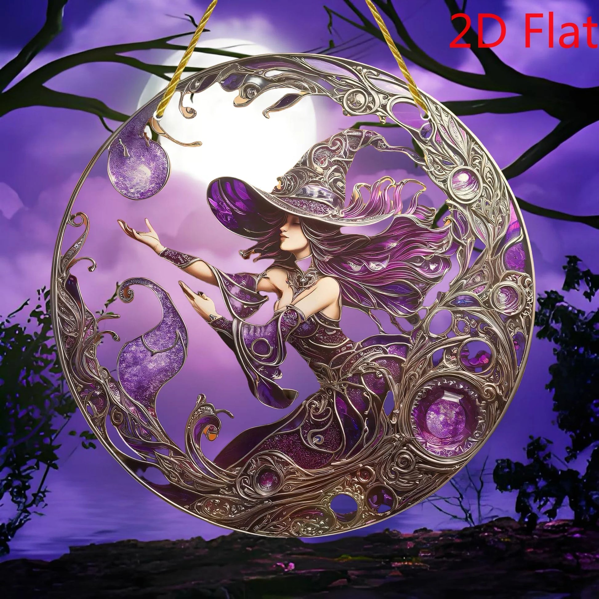 Magic Witch Window Decor - Pre-Drilled 2D Acrylic Hanger for Home/Sisterstion Spooky Ornaments Stickers