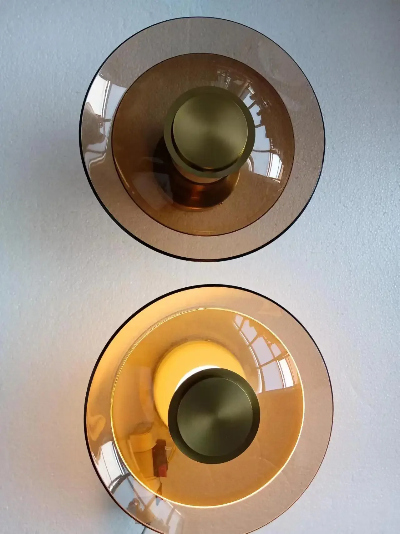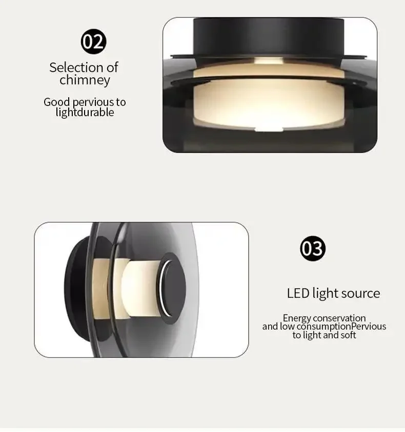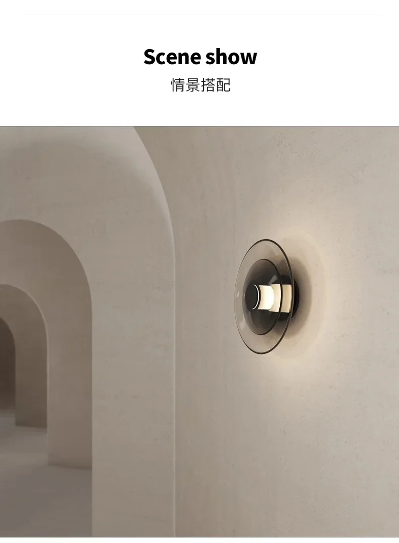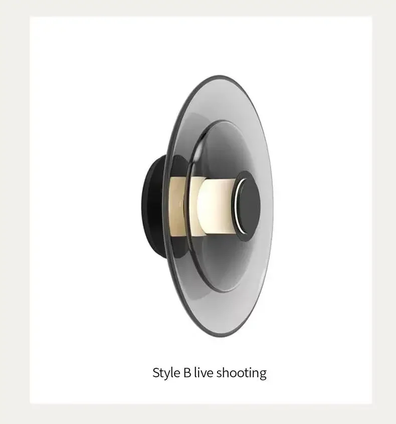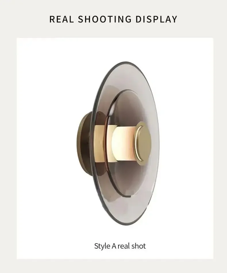 Modern Minimalist Amber Glass Disc Wall Lamp Led Bedroom Living Room Golden Black Indoor Home Decoration Sconce Lighting Fixture