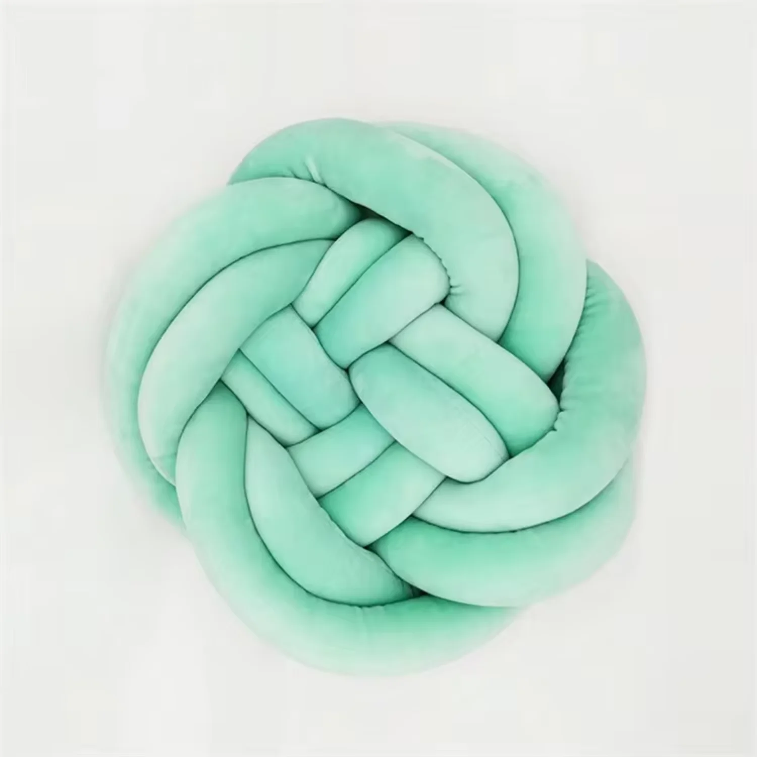 3. "Create a cozy and inviting atmosphere with our hand-crocheted knot pillow, perfect for snuggling up on the couch."