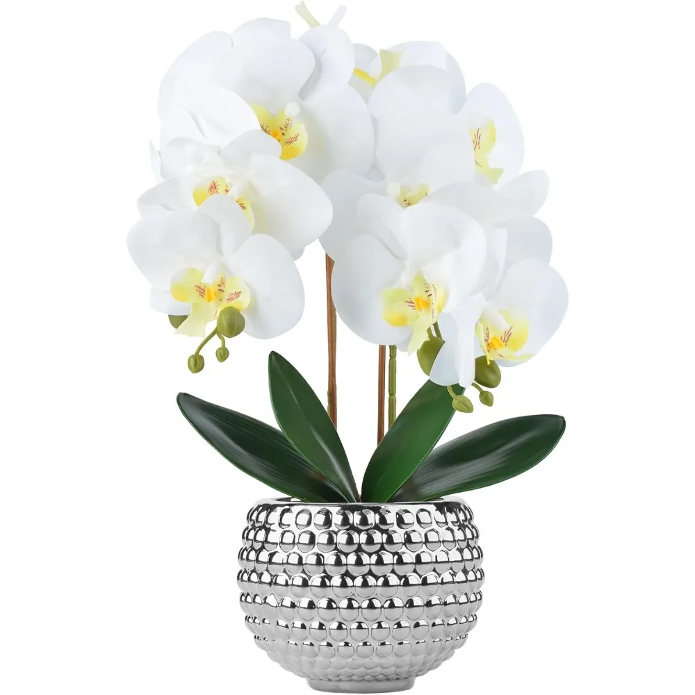 - HIGH-QUALITY MATERIALS: Crafted from top-notch materials, our faux orchid plants for home decor look and feel just like a realistic flower. The ceramic pot adds a touch of glamour with its golden/white finish.