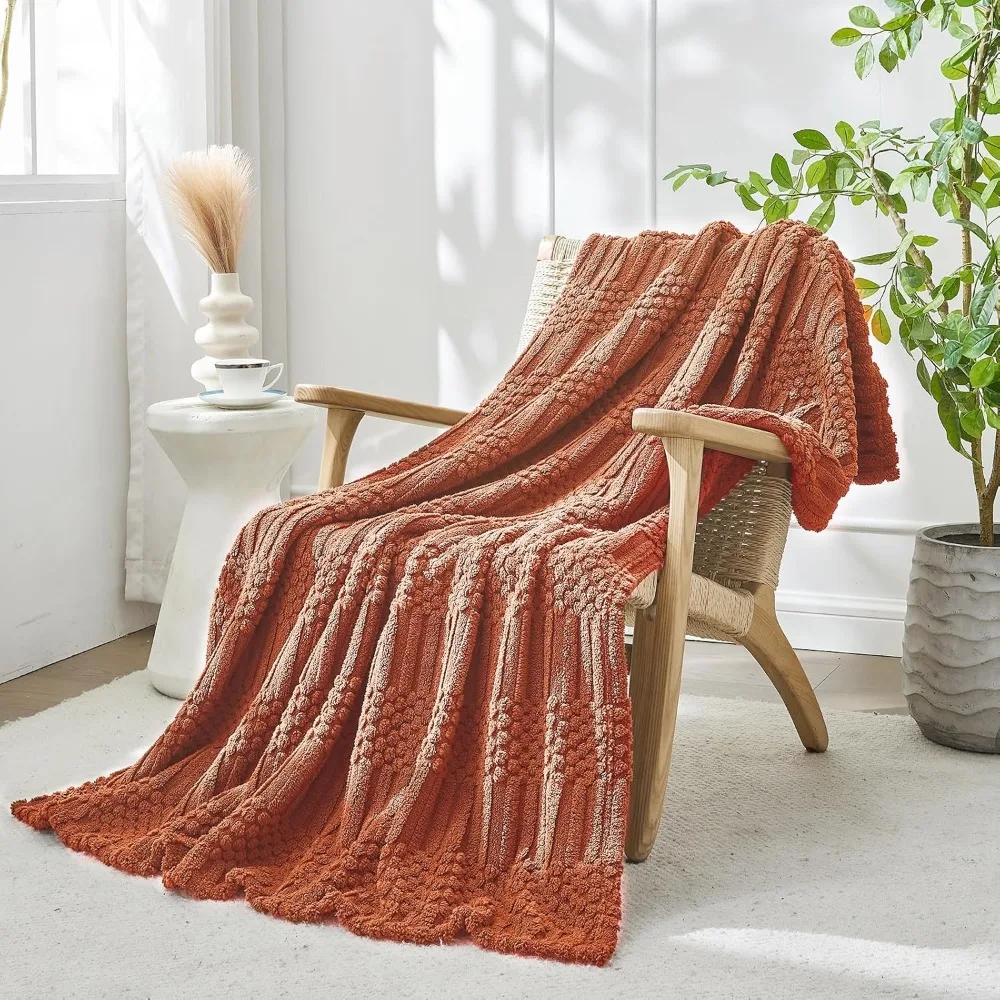 throw blanket for couch-soft boho bed throw blanket, burnt orange fleece cute tan fluffy lightweight cozy blanket for spring(50